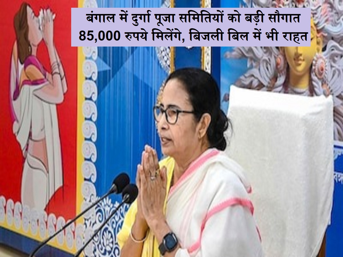 Mamata Banerjee : बंगाल में दुर्गा पूजा समितियों को बड़ी सौगात 85,000 रुपये मिलेंगे, बिजली बिल में भी राहत