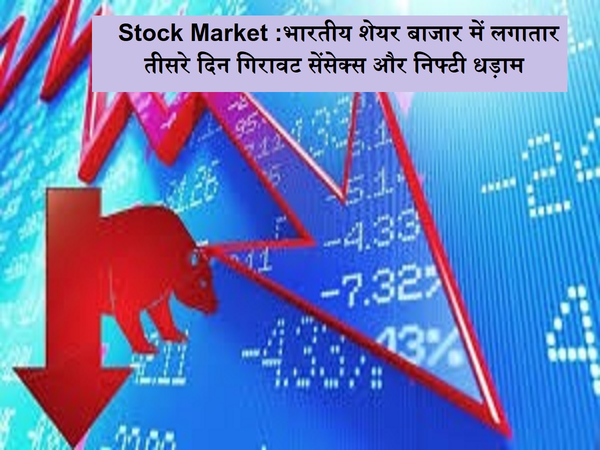 Stock Market :भारतीय शेयर बाजार में लगातार तीसरे दिन गिरावट सेंसेक्स और निफ्टी धड़ाम